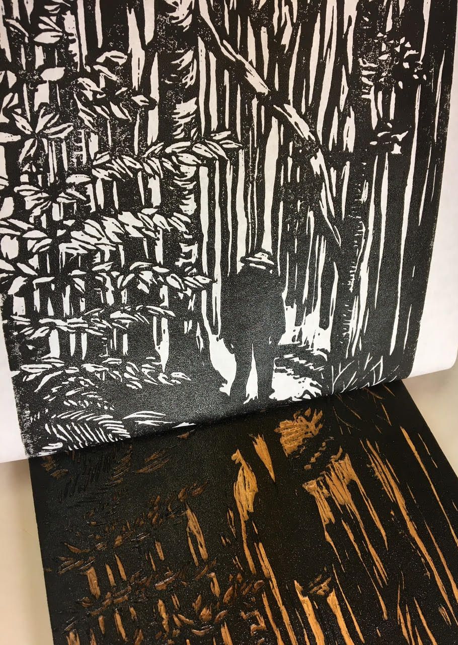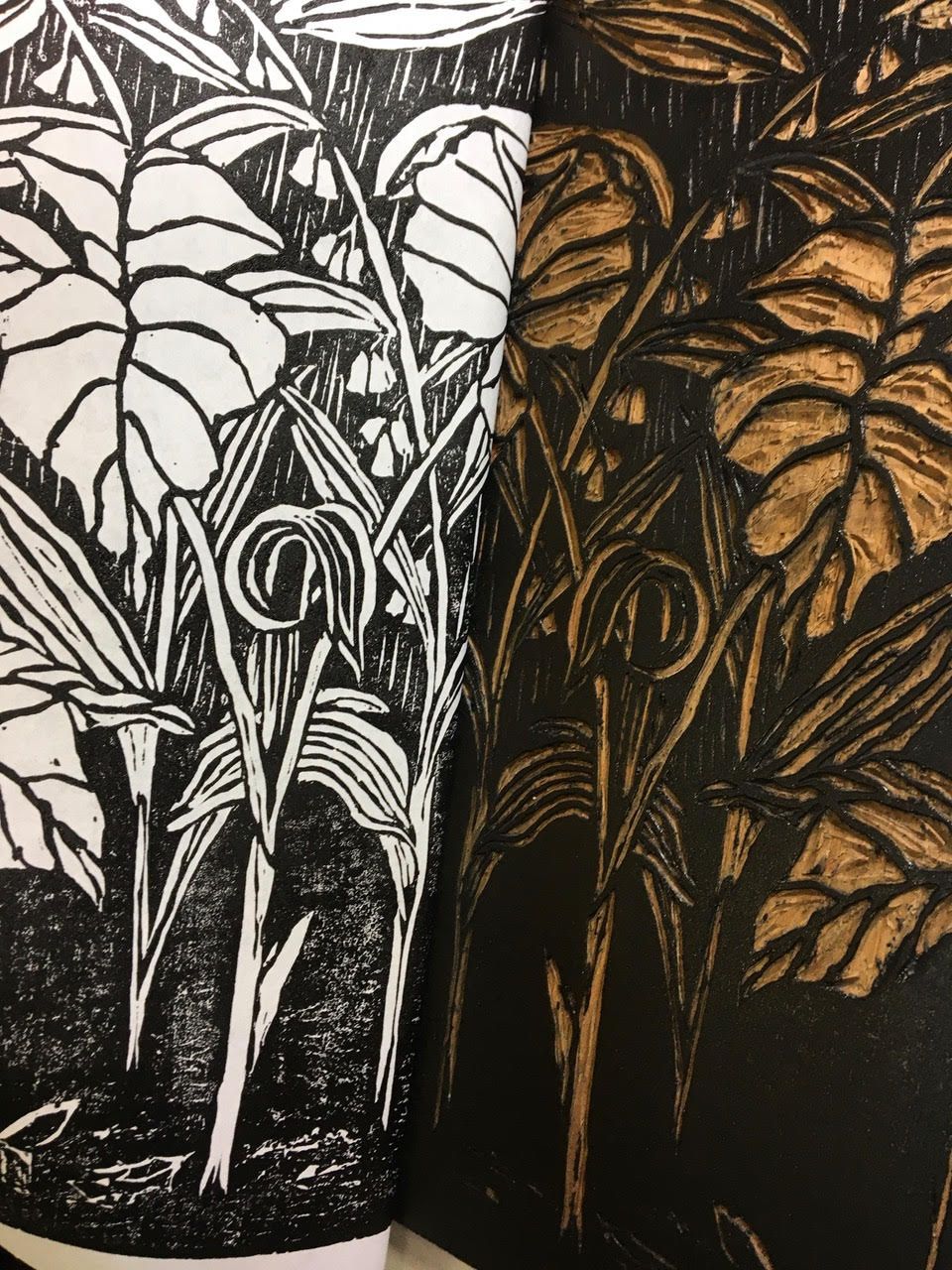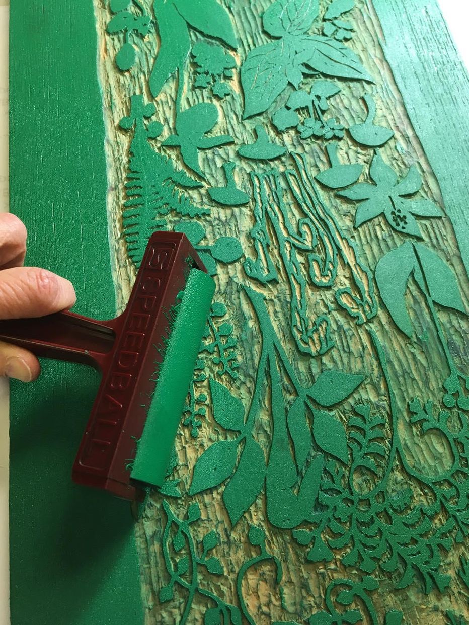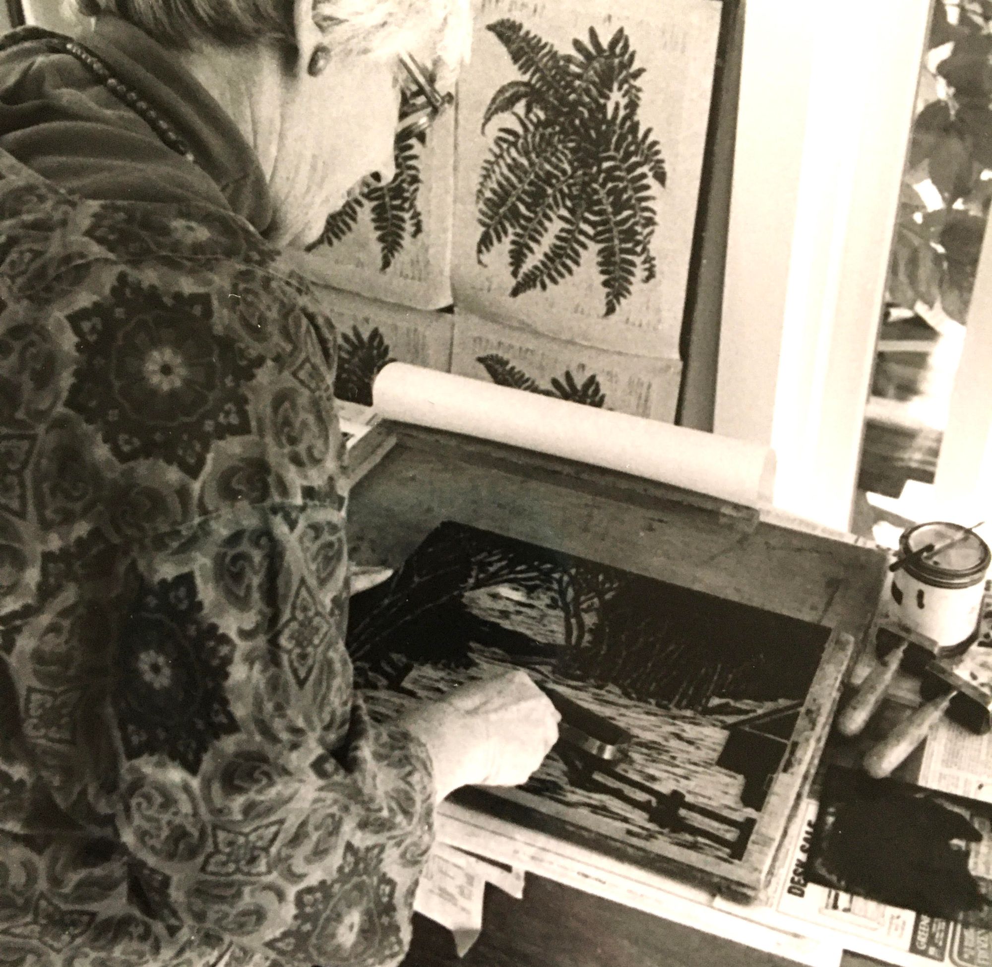 When I'm inking up the block, and I marvel at the intricate complexity of branches or fern fronds, I feel as if I am retroactively visiting her in her studio and that she can feel my pleasure in her artistry.